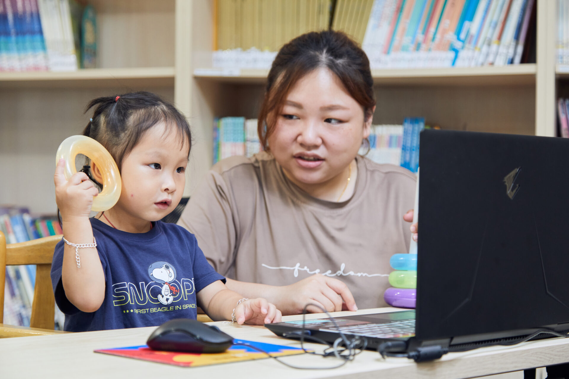 新玩具、新聲音會讓孩子自然停下來,願意聽。